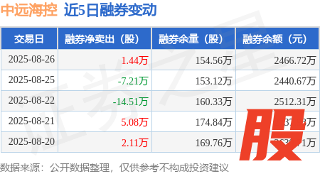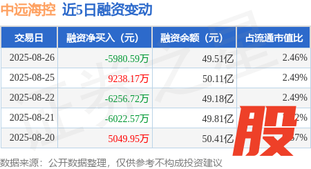 本站消息,8月26日,中远海控(601919)融资买入1.32亿元,融资偿还1.91亿元,融资净卖出5980.59万元,融资余额49.51亿元,近20个交易日中有11个交易日出现融资净买入。